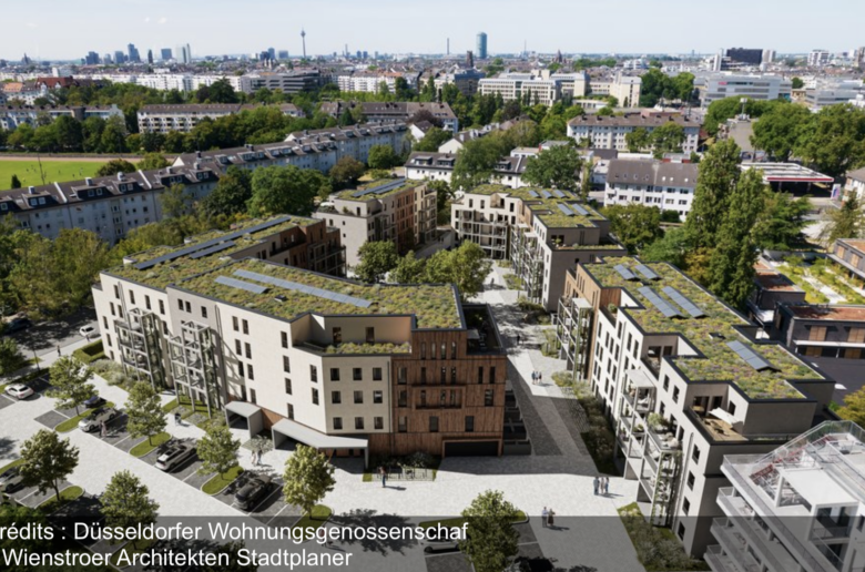 Ce jour-ci, Heiner Lippe, l’architecte passionnant qui nous fait découvrir Düsseldorf  et nous héberge, nous a organisé plusieurs rendez-vous et visites. Nous démarrons par le chantier du projet de logements « L’Arche de Noé », sur lequel nous rencontrons Heiko, Président du conseil de Düsseldorfer Wohnungsgenossenschaft (DWG). Il s’agit de la plus grande et la plus ancienne coopérative de logement social de Düsseldorf qui regroupe environ 8.000 appartements répartis dans presque tous les quartiers. Cette association d’entraide finance, construit et gère des logements de qualité et peu coûteux pour ses membres qui sont exclusivement des locataires, ce qui renforce la dimension collective et participative de la gestion du parc.